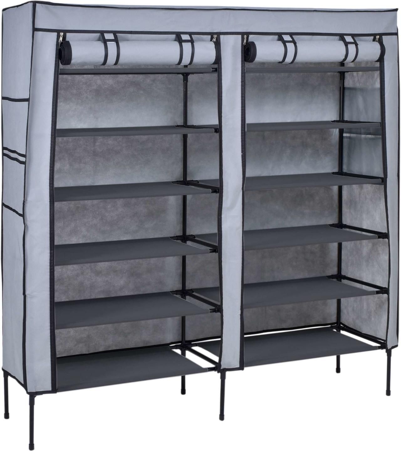 Składana szafa Gabi to lekki i stabilny mebel z metalowym stelażem i oddychającym pokrowcem, idealny do przechowywania ubrań i dodatków. Wyposażona w 12 półek i 4 boczne kieszenie, jest łatwa w montażu i czyszczeniu.