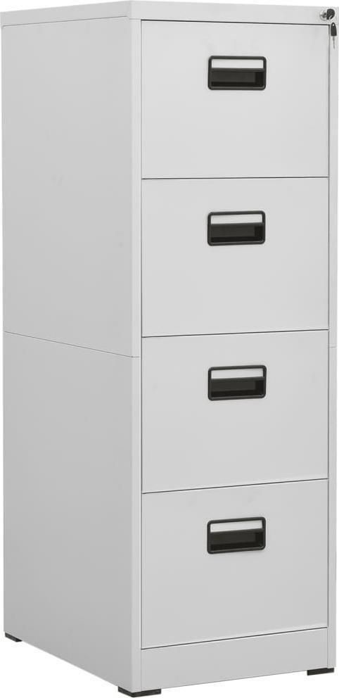 Szafka kartotekowa, jasnoszara, 46x62x133 cm, stalowa vidaXL Kolor: Array Rozmiar: Array Szafka biurowa o nowoczesnym designie jest idealna do uporządkowania i przechowywania teczek i segregatorów. Szafkę wykonano ze stali, dzięki czemu jest trwała i łatwa do czyszczenia. Za sprawą 4 szuflad i zamka pozwala ona posortować dokumenty na różne kategorie i bezpiecznie je przechowywać. Każda szuflada została wyposażona w 1 wyjmowany drążek do zawieszania, który można swobodnie ustawić do rozmiaru oficjalnych dokumentów czy teczek A4. Szuflady z 3-częściowymi prowadnicami łożyskowymi zapewniają gładkie otwieranie i zamykanie nawet przy ich pełnym obciążeniu. Można je również całkowicie wysunąć. Szafka kartotekowa będzie pasować do każdego wystroju biura za sprawą swojej charakterystycznej formy. Kolor: jasnoszary Materiał: stal Wymiary: 46 x 62 x 133 cm (szer. x gł. x wys.) Z możliwością zamknięcia 4 szuflady z 3-częściowymi prowadnicami na łożyskach Szuflady można całkowicie wysunąć Pasujące rozmiary dokumentów: A4 oraz 8,5x14" Maksymalne obciążenie na szufladę: 45 kg Maksymalne obciążenie całkowite: 180 kg Wymagany montaż: tak