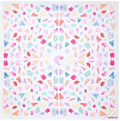 Szalik `Apolline` w kolorze złamanej bieli prezentuje miękkie, kolorowe odcienie i organiczne kształty inspirowane płynnymi formami natury. Jego akwarelowy wzór dodaje orzeźwiającego i żywego akcentu do każdego stroju. Wykonana z wegańskiego jedwabiu (poliester twill) apaszka ma wymiary 90 x 90 cm, oferując wszechstronność stylizacji na wiele sposobów.