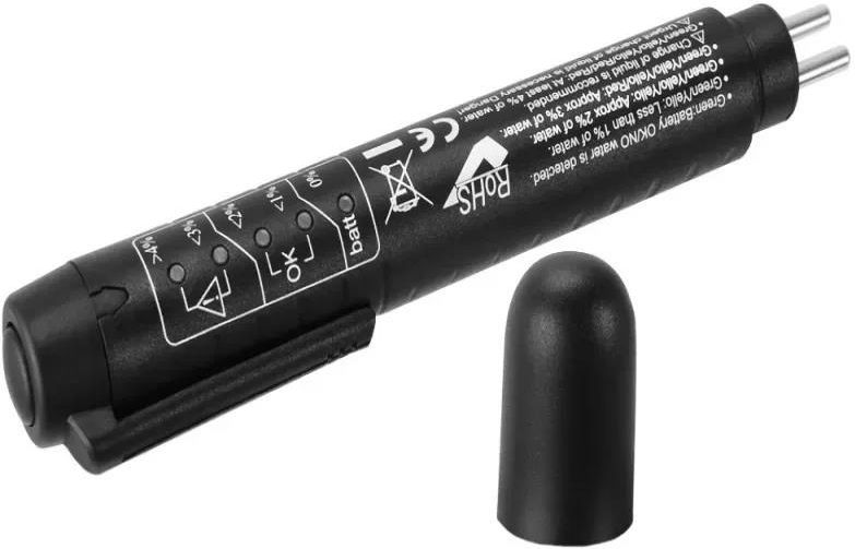 Tester został wyposażony w czytelny miernik LED, który pozwala na łatwe odczytanie stanu płynu hamulcowego. Przy pomocy trzech kolorów, oznaczających różne poziomy wody w płynie hamulcowym. Jest kompatybilny z płynami hamulcowymi DOT 3/4/5/5.1, co oznacza, że możesz używać go w różnych typach samochodów. Tester jest łatwy w obsłudze. Wystarczy włożyć sondę do zbiornika z płynem hamulcowym, a następnie odczytać wynik na mierniku LED. Został zaprojektowany z myślą o trwałości. Solidna obudowa zapewnia ochronę przed wstrząsami i upadkami, co czyni go idealnym narzędziem do codziennego użytku w warsztacie samochodowym. Specyfikacja techniczna Kompatybilność: DOT 3/4/5/5.1 Wyświetlacz: miernik LED Zasilanie: 1x bateria AAA (brak w zestawie) Prosty w obsłudze Wymiary: 1,5cm x 2cm x 15cm Kolor: czarny Zestaw zawiera Fabrycznie nowy tester Oryginalne opakowanie Do pobrania Instrukcja z informacją o bezpieczeństwie.