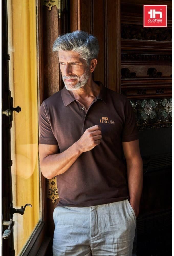 Męska koszulka polo z krótkim rękawem, ze 100% bawełny o splocie piqué (195 g/m²) (Kolor 183: 85% bawełna/15% wiskoza). Kołnierzyk i mankiety z prążkowanym wykończeniem. Kołnierzyk jest wzmocniony taśmą piqué. Z przodu przy kołnierzyku znajdują się 3 pasujące kolorystycznie guziki (dodatkowy guzik na wewnętrznym szwie). Zszywana po bokach, z małymi rozcięciami w szwach bocznych u dołu. Rozmiary: S, M, L, XL, XXL