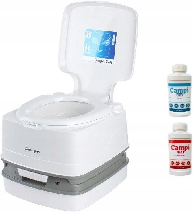 Toaleta turystyczna Qube MT 12L Porta Potti 145 Thetford + Campi Red 250ml + Campi Blue 250ml Producent: THETFORD Rozmiar: uniwersalny ID Produktu: 5809 Zalety Qube MT: Kompaktowy rozmiar Estetyczny design Rozłączane zbiorniki Komfortowe wymiary Maksymalna szczelność toalety Przycisk dekompresyjny zapewniający higieniczne opróżnianie zbiornika Ruchoma rura spustowa ułatwiająca czyszczenie Schowek na artykuły sanitarne Idealna w podróży Dane techniczne: Zbiornik na nieczystości: 12 litrów Zbiornik na czystą wodę: 15 litrów Wymiary: - wysokość: 33 cm - szerokość: 38,3 cm - głębokość: 42,7 cm Waga: 3,3 kg Maksymalna waga użytkownika: 120 kg Campi Blue: Przyspiesza rozkład nieczystości i rozpuszczanie papieru toaletowego Ułatwia opróżnianie zbiornika na nieczystości Ogranicza powstawanie gazów i osadów w zbiorniku Neutralizuje nieprzyjemne zapachy Nie zawiera formaldehydu Pojemność: 250 ml Przeznaczenie: do zbiornika na nieczystości Sposób użycia: na 10 L zbiornik toalety stosować 60 ml płynu. Rozprowadzić płyn w niewielkiej ilości wody i wlać do opróżnionego zbiornika. Stosować nie rzadziej niż co 7 dni Campi Red: Tworzy warstwę ochronną na muszli toalety i ułatwia spłukiwanie Zapobiega osadzaniu się kamienia Zapewnia sprawne działanie zaworu odpływowego Pomaga utrzymywać higieniczną czystość toalety Przy korzystaniu z wody ze zbiorników naturalnych zapobiega namnażaniu się glonów Pozostawia przyjemny zapach Pojemność: 250 ml Przeznaczenie: do zbiornika z czystą wodą Sposób użycia: na 15 L zbiornik toalety stosować 100 ml płynu
