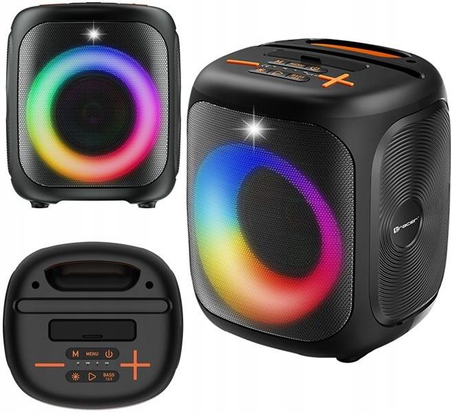 GŁOŚNIK PRZENOŚNY IMPREZOWY BLUETOOTH 5.4 3600mAh CZARNY Z PODŚWIETLENIEM Moc i czystość dźwięku – 20W, Bluetooth 5.4 i TWS Tracer Cube20 to kompaktowy głośnik o mocy 20W, który oferuje zaskakująco czysty i wyraźny dźwięk w niewielkiej obudowie. Dzięki technologii Bluetooth 5.4 zapewnia szybkie, stabilne połączenie z urządzeniami mobilnymi oraz bezstratną transmisję dźwięku. Funkcja TWS (True Wireless Stereo) umożliwia sparowanie dwóch głośników i uzyskanie przestrzennego efektu stereo, idealnego do słuchania muzyki w większych pomieszczeniach lub na zewnątrz. Kompaktowy kształt ułatwia przenoszenie i ustawienie w dowolnym miejscu, a solidna konstrukcja gwarantuje trwałość w codziennym użytkowaniu. Głośnik sprawdzi się zarówno podczas spotkań z przyjaciółmi, jak i w domowym zaciszu. Wysoka jakość dźwięku oraz wygoda obsługi czynią go praktycznym rozwiązaniem dla każdego użytkownika. Mobilność i długi czas działania – bateria 3600 mAh z szybkim ładowaniem USB-C Tracer Cube20 został wyposażony w baterię o pojemności 3600 mAh, która pozwala na nieprzerwaną pracę nawet przez 6 godzin. Dzięki portowi USB-C urządzenie ładuje się szybko i wygodnie, co eliminuje długie przerwy w odtwarzaniu muzyki. Wbudowane radio FM umożliwia słuchanie ulubionych stacji bez potrzeby korzystania z telefonu czy internetu. Głośnik posiada również slot na karty microSD oraz port USB, co pozwala odtwarzać muzykę bezpośrednio z pamięci zewnętrznych nośników. Dzięki temu użytkownik ma pełną swobodę wyboru źródła dźwięku. Mobilność, wydajność i łatwość obsługi sprawiają, że Cube20 to idealny sprzęt do codziennego użytku i podróży. Efekty wizualne i rozrywka – podświetlenie RGB oraz funkcja karaoke Ten model wyróżnia się efektownym podświetleniem RGB LED, które tworzy przyjemną atmosferę i podkreśla rytm muzyki. Tracer Cube20 oferuje funkcję karaoke, dzięki czemu świetnie sprawdza się podczas imprez czy rodzinnych spotkań. Wbudowany korektor bassu pozwala dopasować charakter brzmienia do własnych preferencji, co zwiększa komfort odsłuchu. Solidna obudowa o średnicy głośnika 4" zapewnia odpowiedni rezonans, dzięki czemu bas jest wyraźny i głęboki. Urządzenie łączy w sobie funkcjonalność, dobrą jakość dźwięku i efektowny wygląd, stanowiąc doskonałe rozwiązanie dla osób ceniących prostotę oraz praktyczność. Specyfikacja techniczna Moc RMS: 20 W Bluetooth: 5.4 Pojemność baterii: 3600 mAh (czas pracy do 6 h) Zasilanie: USB DC 5V (port USB-C – szybkie ładowanie) Średnica głośnika: 4" Pasmo przenoszenia: 100 Hz – 20 kHz Funkcje dodatkowe: Radio FM, karaoke, korektor bassu, TWS, podświetlenie RGB LED Nośniki i wejścia: USB, microSD (do 32GB), mini-jack 3.5 mm, jack 6.35 mm Transmisja danych: Bluetooth, przewodowa (AUX) Wyjście słuchawkowe: Brak Mikrofon: Brak Wymiary i forma: kompaktowa konstrukcja o mobilnym charakterze, przystosowana do codziennego użytkowania.