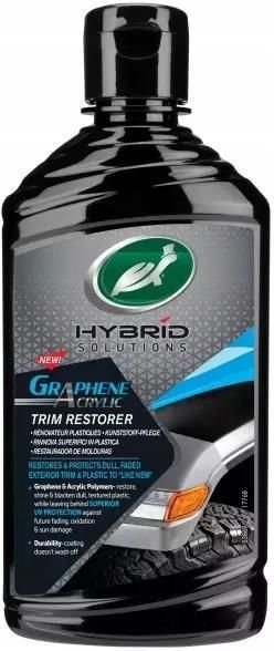 Turtle Wax Hybrid Solutions Trim Resorer 0,3L grafenowy dressing do tworzyw Hybrid Solutions Graphene Acrylic Trim Restorer to zaawansowana formuła, która przywraca i chroni matowe, wyblakłe zewnętrzne elementy wykończeniowe i plastiki. Kombinacja grafenu i polimerów akrylowych nabłyszcza i przyciemnia matowe tekstury plastiku, zapewniając doskonałą ochronę przed promieniowaniem UV. Ta trwała powłoka ochrona do plastików zewnętrznych TURTLE WAX nie zmywa się i wytrzymuje nawet przez cały sezon! W ciągu kilku minut od nałożenia jest sucha w dotyku. Graphene Acrylic Trim Restorer działa równie dobrze przy ochronie nowych elementów wykończeniowych i plastiku przed blaknięciem spowodowanym czynnikami zewnętrznymi, myciem samochodu i solą drogową. Dobrze oczyść element plastiku z zabrudzeń stosując gąbkę melaminową oraz roztwór APC Na osuszony, zimny element aplikuj produkt za pomocą gąbki lub aplikatora Pozostaw do wchłonięcia i odparowania Nadmiar lub nierówno rozłożony produkt zbierz mikrofibrą Pojemność: 296ml Producent: