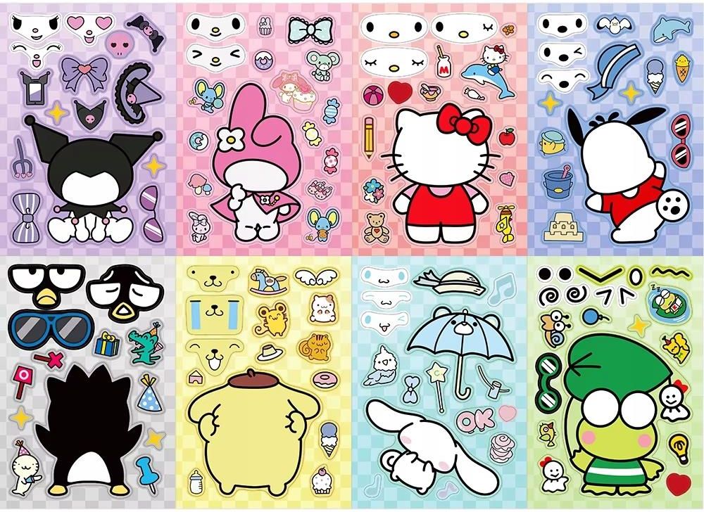 Miniaturka przedstawia realne zdjęcie sprzedawanego przedmiotu: Zestaw 8 szt kart do wyklejania z Kurmi, Hello Kitty, Cinamonrol, My Melody i inni Zawiera 8 kart do wyklejania Każdą kartę można wykleić na wile sposobów Zapewnia świetną rozrywkę dla Twojej pociechy jak i Ciebie Każde dziecko uwielbia naklejki zwłaszcza gdy samo decyduje jak ma wyglądać ulubiony bohater