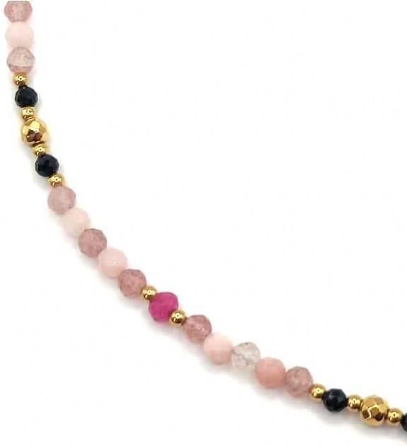 Bransoletka wykonana ze srebra próby 925, pozłacanego 24 karatowym złotem Kamień: Opal+ Kwarc+ Turmalin i Hematyt Rozmiar kamienia: 4/3/2mm Długość: 17,5 cm Zapięcie: federing Bransoletka może być wykonana na gumce- prosimy o informację w uwagach do zamówienia Biżuteria ręcznie wykonana, produkt Polski.