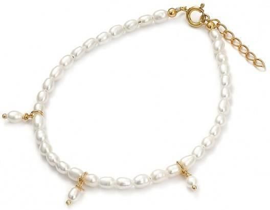 Bransoletka wykonana ze srebra próby 925 , pozłacanego 24 karatowym, żółtym złotem Kamień: perła Rozmiar kamienia: 4 mm Długość :szyja: 17,5 cm + przedłużka do 19,5 cm OPAKOWANIE W CENIE