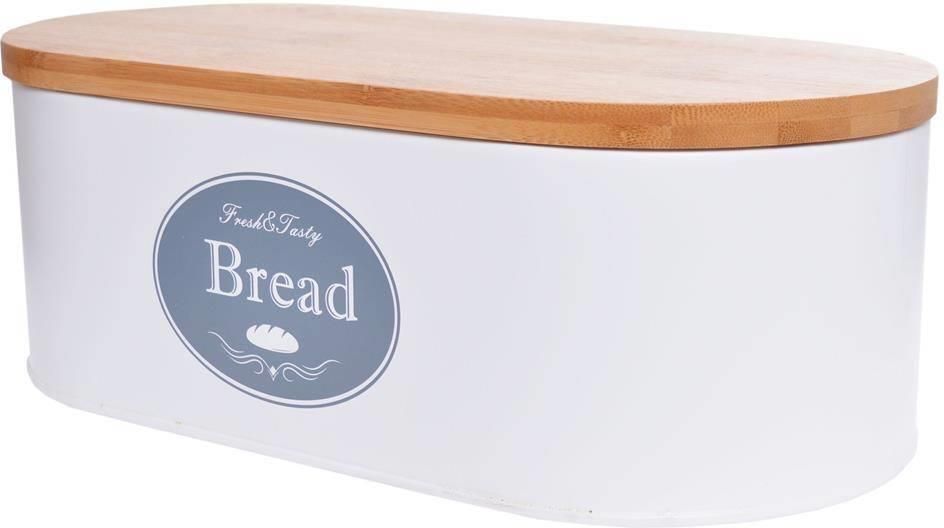 Upominkarnia Chlebak Metalowy Z Bambusową Pokrywą Owalny Duży Biały (694394) Gdynia