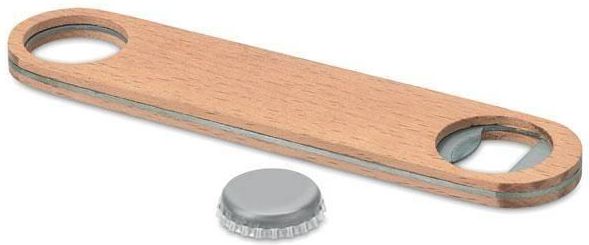 Otwieracz do butelek ze stali nierdzewnej i drewna.