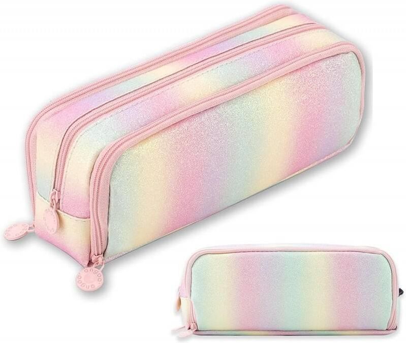 DUŻY PIÓRNIK WIELOFUNKCYJNY SASZETKA TRZYKOMOROWY Pojemny, wielofunkcyjny trzykomorowy piórnik Wykonany z wysokiej jakości materiałów. Ergonomiczne wykorzystanie przestrzeni. Specyfikacje: Kolor: tęczowy brokatowy Materiał: 100% poliester Wymiary: 22 cm x 8 cm x 9 cm Waga: 105g
