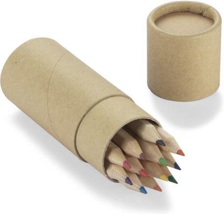 Zestaw REDKO to 12 drewnianych kredek zapakowanych w tekturową tubę.