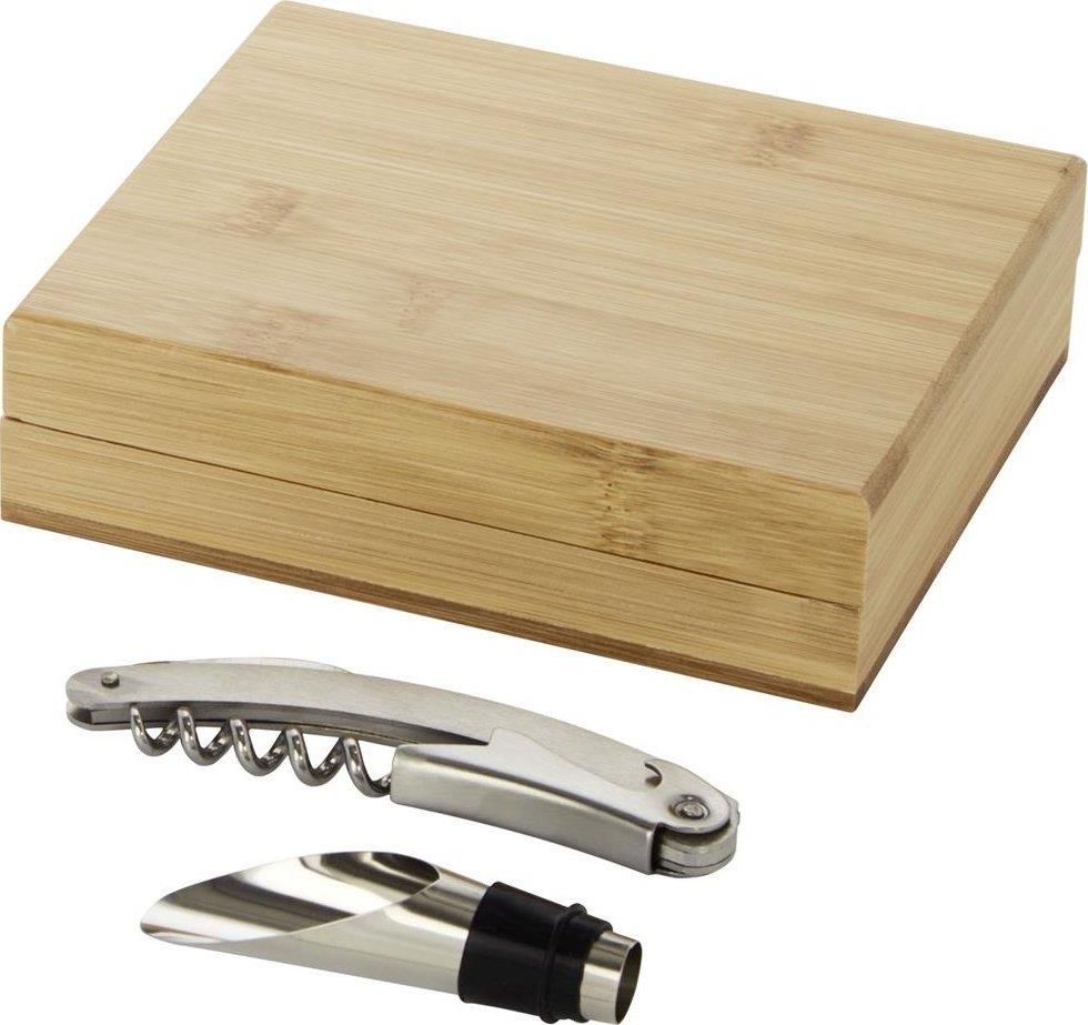 Merlou 2-częściowy zestaw do wina 11314806 Beżowy Stan: Nowy Waga (g): 208 Wymiary (cm): 12 x 4 x 15 cm Kolory: Piasek pustyni 2-częściowy zestaw do wina składający się z korkociągu kelnerskiego i nalewaka do butelek. Dostarczane w bambusowym pudełku upominkowym, które zostało wyprodukowane zgodnie z zasadami zrównoważonego rozwoju.
