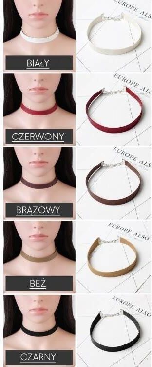 HIT SEZONU! Naszyjnik choker z zapięciem w kolorze srebra. Wykonany ze skóry ekologicznej - bardzo wygodny w noszeniu. Klasyczne i proste wzornictwo naszyjnika idealnie podkreśli naturalne piękno i klasę kobiety.Świetnie pasuje do eleganckich, jak również do codziennych stylizacji. Naszyjnik prezentuje się rewelacyjnie!Naszyjnik wykonany jest ze stopów metali nieszlachetnych.Nie zawiera niklu ani chromu. Wymiary:- długość 31 cm - 6,5 cm dodatkowej regulacji - szerokość 1,5 cm