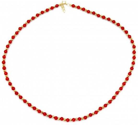 Naszyjnik KORAL 925 Stan: Nowy Naszyjnik wykonany ze srebra próby 925, pozłacanego 24 karatowym złotem. Kamień: Koral + Hematyt Rozmiar kamienia: 4/2 mm Długość: 44 cm Długości do wyboru: 38 cm /42 cm/ 44 cm Zapięcie: klasyczne (federing) Biżuteria ręcznie wykonana, produkt Polski.
