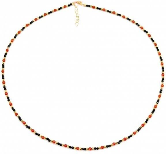 Naszyjnik RED KORAL 925 Stan: Nowy Naszyjnik wykonany ze srebra próby 925, pozłacanego 24 karatowym złotem. Kamień: Koral + Spinel + Hematyt Rozmiar kamienia: 2 mm Długość: 44 cm Długości do wyboru: 38 cm /42 cm/ 44 cm Zapięcie: klasyczne (federing) Biżuteria ręcznie wykonana, produkt Polski.