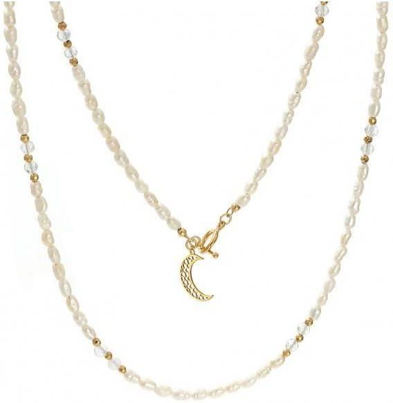 Naszyjnik wykonany ze srebra próby 925 , pozłacanego 24 karatowym, żółtym złotem Kamień: Hematyt + Kryształ górski +perła Rozmiar kamienia: 4 mm/2mm Długość :szyja: 42 cm + przedłużka do 59 cm OPAKOWANIE W CENIE
