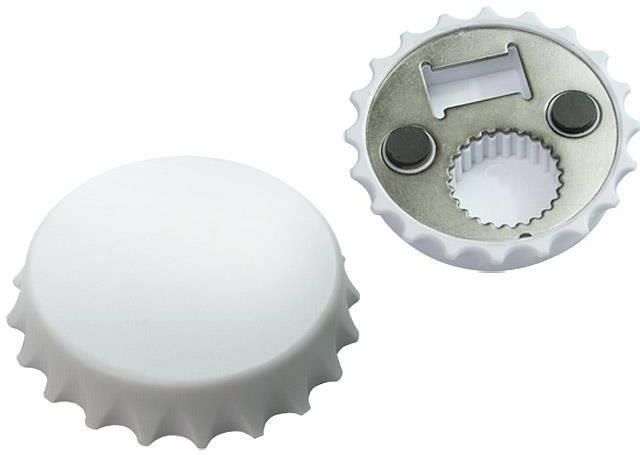 Otwieracz do butelek w kształcie kapsla. Posiada wbudowany magnes, za pomocą którego otwieracz można przymocować do lodówki. Znakowanie logo wykonujemy metodą nadruku.