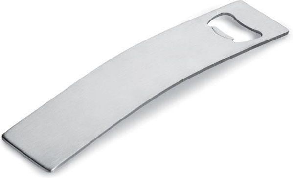 Elegancki wygięty otwieracz do butelek. Mocna stal nierdzewna.