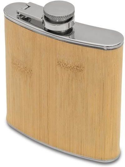 Piersiówka 175ml Louth, beżowy Stan: Nowy Wymiary (szer./wys./gł.) [mm]: 95 x 110 x 26 Materiał: Stal nierdzewna Kolory: Beżowy Waga (kg): 0.12 Piersiówka ze stali nierdzewnej o podwyższonej jakości 18/8, z eleganckim bambusowym wykończeniem. Pojemność 175 ml.