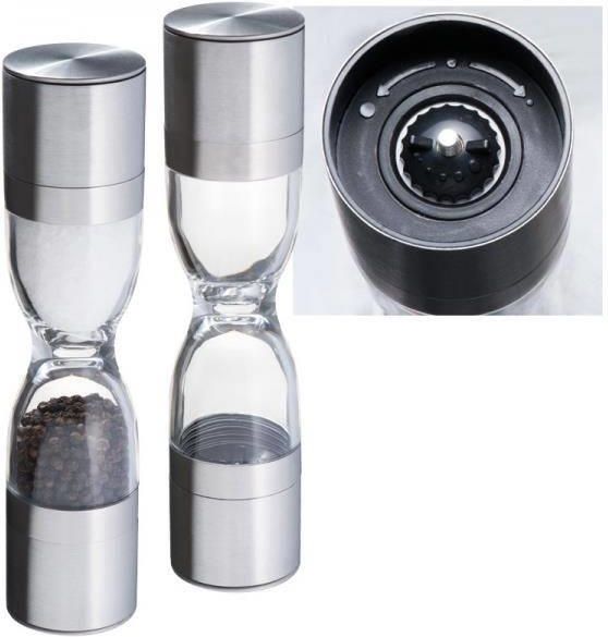 Pojemnik 2w1 na sól i pieprz. Wykonany ze stali nierdzewnej oraz plastiku z 2 ceramicznymi mechanizmami do mielenia. Twoje logo możemy nanieść na środku metalowej części pojemnika. Pojedynczo pakowane w pudełko.