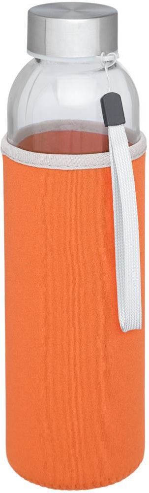 Bidon szklany Bodhi o pojemności 500 ml Stan: Nowy Waga (g): 265 Wymiary (cm): 22,1 x Ø 6,3 cm Kolory: Pomarańczowy Szklana butelka z jednowarstwową ścianką i zakrętką. Zakrętka posiada pasek do łatwego przenoszenia oraz neoprenowe etui. Zalecana do zimnych napojów. Nie zamrażać, nie używać w kuchence mikrofalowej. Pojemność 500 ml. Zapakowane w pudełko podarunkowe.