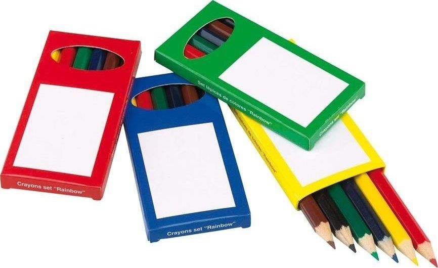 Zestaw kredek RAINBOW zawiera 6 kolorowych naostrzonych kredek w kolorowym pudełku - mix 4 kolorów.