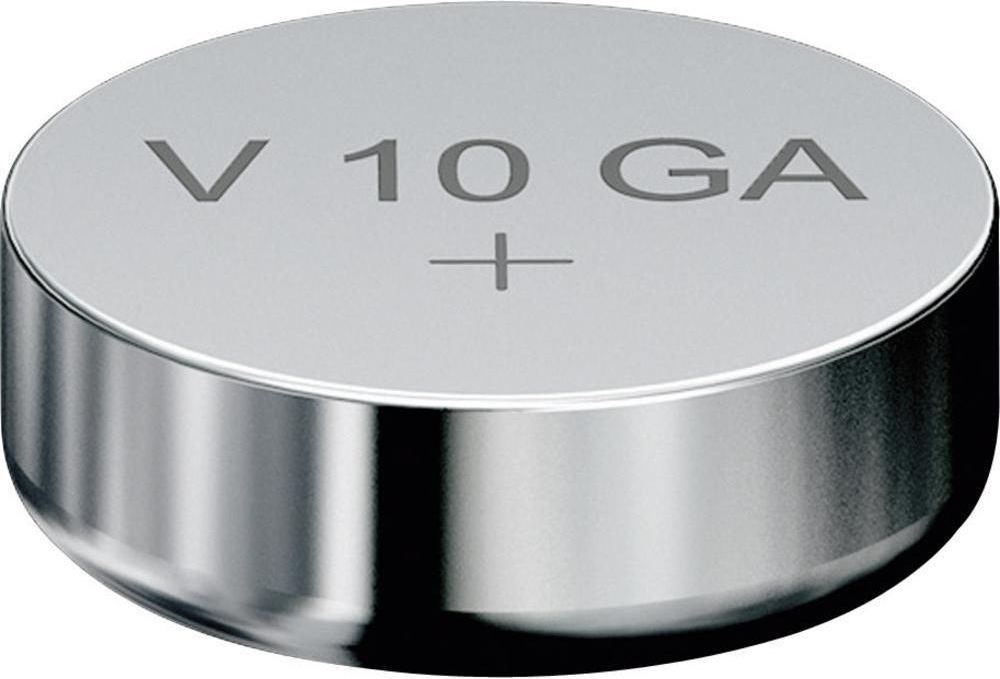 Varta V10GA. Rodzaj baterii: Jednorazowa bateria, Rozmiar baterii: LR54, Technologia baterii: Alkaliczny. Wysokość produktu: 3,1 mm, Średnica: 1,16 cm, Waga produktu: 1,1 g Specyfikacja Waga produktu 1,1 g Wysokość produktu 3,1 mm Średnica 1,16 cm Liczba baterii włączone 1 szt. Napięcie baterii 1,5 V Rodzaj baterii Jednorazowa bateria Technologia baterii Alkaliczny Pojemność baterii 70 mAh Rozmiar baterii LR54 Rodzaj baterii Jednorazowa bateria Szerokość 55mm Długość 5mm Wysokość 65mm