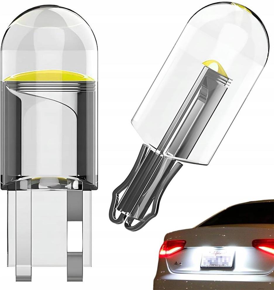 Żarówki Samochodowe LED W5W T10, 12V - Biała Krystaliczna Ledowa, Komplet 2szt. Czy marzysz o ostrzejszym, bardziej jasnym oświetleniu swojego samochodu żarówki LED W5W to idealne rozwiązanie!! Zapewniają one nie tylko mocne i białe światło, ale także długą żywotność. Wykonane z wysokiej jakości materiałów. Żarówki LED W5W są kompatybilne z większością modeli samochodów, co oznacza, że możesz je z łatwością zamontować w swoim pojeździe bez względu na markę czy rok produkcji. PASUJĄ JAKO M.IN.: - Światła pozycyjne, - Światła wewnętrzne, - Podświetlenie zegarów, - Kierunkowskazy, - Podświetlenie tablicy rejestracyjnej, - Światło bagażnika. Te żarówki LED W5W emitują silne, białe światło (tzw. zimny biały), które oświetla drogę przed Tobą zwiększając Twoje bezpieczeństwo na drodze. Dzięki nim, każda podróż stanie się bardziej komfortowa i przyjemna. ŻARÓWKI TE TO ZAMIENNIK DLA: - T10, - W3W, - W10W, - W16W, - WY5W. Polaryzacja nieobojętna- jeśli po założeniu żarówka nie świeci należy zamontować (wcisnąć) ją odwrotnie. DANE TECHNICZNE: - Napięcie: 12V, - Rodzaj żarówek: W5W / T10, - Typ diody: COB, - Barwa światła: ~6500k (biały zimny), - Obudowa: krystaliczna, - Wymiary (dł. x szer.): 23 x 9 mm, - Certyfikaty: CE. W CENIE: - Fabrycznie nowe 2szt. żarówek W5W T10, - Estetyczne opakowanie, - Gwarancja. Wysyłka w 24h! Płatność przy odbiorzeMożliwość wcześniejszej wpłaty Przy zakupie kilku produktów naraz - płatny tylko jeden koszt przesyłki! Możliwość wysyłki pocztą lub kurierem Realizujemy również przesyłki za granicę oraz na "Poste Restante" Na życzenie wystawiamy faktury VAT Wszystkie ceny zawierają podatek VAT 23%
