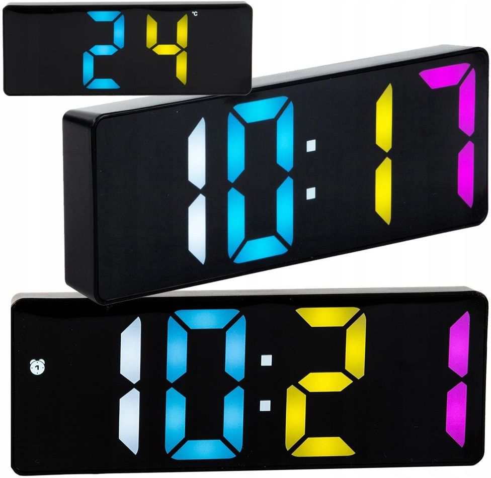 Verk Group Zegar Budzik Cyfrowy Elektroniczny Termometr Kolorowy Alarm Data Drzemka (27437) Gdynia
