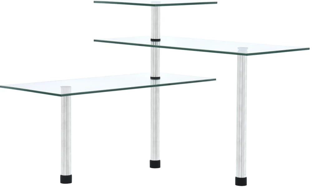Dzięki 3-poziomowej półce narożnej można dobrze wykorzystać każdą niewielką przestrzeń. Ten regał zapewnia sprytne miejsce na talerze, kubki, a nawet jedzenie w puszkach. Możesz używać go jako stojaka na przyprawy czy książki, bądź jako organizera do wyeksponowania małych talerzyków, ozdób, zdjęć i innych. Przyda się w kuchni, biurze, łazience, sypialni itp. Wykonana z eleganckiego i praktycznego połączenia stali nierdzewnej i wzmocnionego szkła hartowanego, ta półka jest odporna na rdzę i może zapewnić długotrwałe użytkowanie. Mebel dobrze wpisze się w przestrzeń dzięki regulowanemu położeniu każdego poziomu. Gładka powierzchnia ułatwia czyszczenie. Montaż półki jest prosty. Kolor: przezroczysty i srebrny Materiał: blat ze szkła hartowanego i nogi ze stali nierdzewnej Wymiary szklanego blatu (S): 18 x 18 x 36 cm (dł. x szer. x wys.) Wymiary szklanego blatu (M): 42 x 18 x 20 cm / 42 x 18 x 28 cm (dł. x szer. x wys.) 3 przestawne półki pomagają zmaksymalizować przestrzeń blatu Produkt jest łatwy w czyszczeniu, za sprawą gładkiej powierzchni