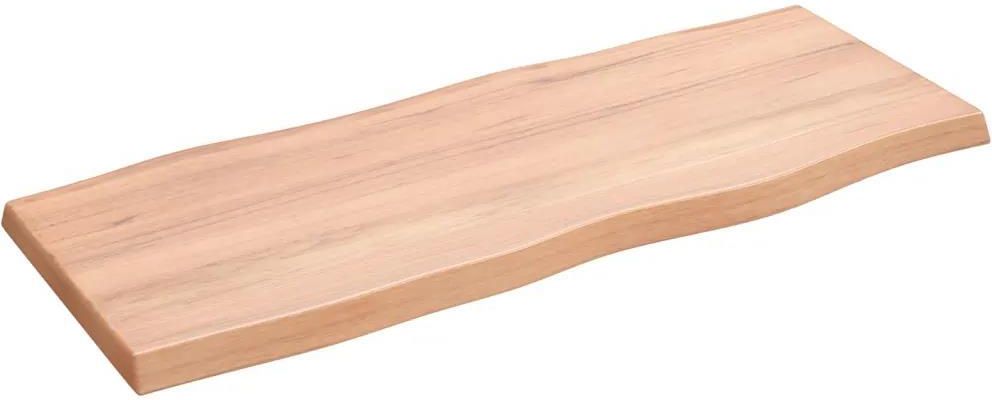 Blat, jasnobrązowy 100x40x(2-4)cm drewno z naturalną krawędzią Daj swojemu stolikowi nowe życie za sprawą tego drewnianego blatu. Jest to świetny sposób na odświeżenie stołu w domu lub w przestrzeni komercyjnej. Lite drewno dębowe: blat biurka wykonano z litego drewna dębowego, czyli pięknego, naturalnego materiału. Drewno to ma odcień średniego brązu oraz zwartą strukturę słojów, co przyczynia się do jego unikatowego wyglądu. Uniwersalne zastosowanie: blat można łączyć z różnymi podstawami w zależności od Twoich potrzeb. Wykończona powierzchnia: blat został polakierowany, dzięki czemu jest gotowy do użytku i nie wymaga żadnych dodatkowych zabiegów. Ręcznie wykonany blat z naturalną krawędzią: blat został wykonany z najwyższą starannością. Ma naturalną krawędź, która dodaje mu uroku. Sęki, pęknięcia, lekkie krzywizny i różne odcienie są częścią drewna dębowego. Każdy element ma swój niepowtarzalny charakter. Wysyłka odbywa się losowo, dzięki czemu otrzymasz zupełnie wyjątkowy i niepowtarzalny produkt. Warto wiedzieć: Drewno to produkt naturalny, który może mieć sęki lub pewne niedoskonałości. Wypełnimy je czarnym wypełnieniem, aby zapewnić gładkie wykończenie. Kolor: jasnobrązowy Materiał: lite drewno dębowe wykończone lakierem Wymiary całkowite: 100 x 40 x (2-4) cm (dł. x szer. x gr.) Maksymalne obciążenie: 32 kg Dwie długie, naturalne krawędzie