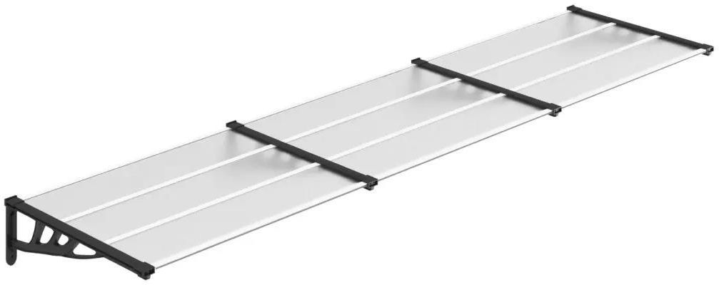 Ten wspaniały daszek nad drzwi to praktyczne rozwiązanie, które pozwoli osłonić wejście do domu przed śniegiem, deszczem, gradem i innymi niesprzyjającymi warunkami pogodowymi. Trwały materiał: wydrążone arkusze poliwęglanu, z którego zbudowano to zadaszenie nad drzwi frontowe, są niezwykle trwałe, odporne na warunki pogodowe i korozję. Solidna rama: trwała konstrukcja z mocnymi wspornikami z ABS i aluminiowymi listwami jest wyjątkowo stabilna i wystarczająco mocna, alby utrzymać to zadaszenie. Prosta instalacja: wszystkie wymagane akcesoria montażowe do daszku nad drzwiczki są dołączone, co pozwala na łatwą i szybką instalację. Warto wiedzieć: Produkt może być stosowany wyłącznie w jedno- lub dwurodzinnych budynkach. Aby maksymalnie ułatwić montaż, każdy produkt jest dostarczany z instrukcją obsługi. Uwaga: Zadaszenie nie jest przygotowane do utrzymania ciężkiego śniegu. Kolor: czarny i przezroczysty Materiał: PC (poliwęglan), ABS (kopolimer akrylonitrylo-butadienowo-styrenowy), aluminium Wymiary całkowite: 358,5 x 90 x 27,5 cm (dł. x szer. x wys.) Wymiary pojedynczego wspornika: 90 x 28 x 6 cm (dł. x szer. x gr.) Wymiary pojedynczego arkusza poliwęglanowego: 115 x 27,5 x 5 cm (dł. x szer. x gr.) Zawartość przesyłki: 9 x arkusz poliwęglanowy 4 x wspornik z ABS 6 x złącze w kształcie litery H z oksydowanego aluminium 6 x oksydowana listwa aluminiowa