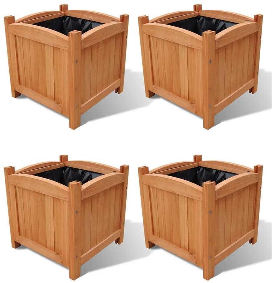 Zestaw 4 pięknych podwyższonych donic będzie przykuwającym wzrok dodatkiem do Twojego ogrodu, tarasu i patio. W donicach można uprawiać wszelkiego rodzaju rośliny i kwiaty. Zostały one wykonane z odpornego na czynniki pogodowe, litego drewna, które jest dość trwałe, by wytrzymało użytkowanie na dworze przez cały rok. Wyściółka z PE pomoże utrzymać glebę i wilgoć w donicy. W skład przesyłki wchodzą 4 drewniane donice. Materiał: lite drewno Wymiary całkowite: 30 x 30 x 30 cm (dł. x szer. x wys.) Przesyłka zawiera 4 donice