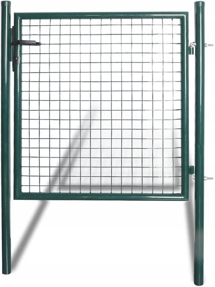 VidaXL Furtka ogrodzeniowa, malowana proszkowo stal vidaXL Kolor: Array Ta furtka ogrodzeniowa będzie współcześnie wyglądającym, praktycznym wejściem oddzielającym Twój ogród od świata zewnętrznego. Bardzo stabilna oraz wytrzymała bramka będzie praktyczną barierą ochronną dla Twojego ogrodu lub tarasu. Brama wykonana z wytrzymałej stali ma solidną konstrukcję i została pomalowana proszkowo by zabezpieczyć ją przed na rdzą i korozją. Bramka ma dwa solidne słupki z mocnymi zawiasami dla łatwego montażu, a do zestawu dołączony jest również wytrzymały system zamykania z trzema pasującymi kluczami. Brama jest świetnym połączeniem trwałości, stabilności i odporności na korozję! Kolor: ciemnozielony Materiał: stal malowana proszkowo Wymiary całkowite: 100 x 150 cm (szer. x wys.) Wymiary bramki: 83 x 100 cm (szer. x wys.) Wymiary oczek siatki: 50 x 50 mm (dł. x szer.) Średnica słupka: 48 mm Wytrzymały zamek z 3 pasującymi kluczami dołączonymi do zestawu 2 słupki z wytrzymałymi zawiasami ułatwiającymi montaż