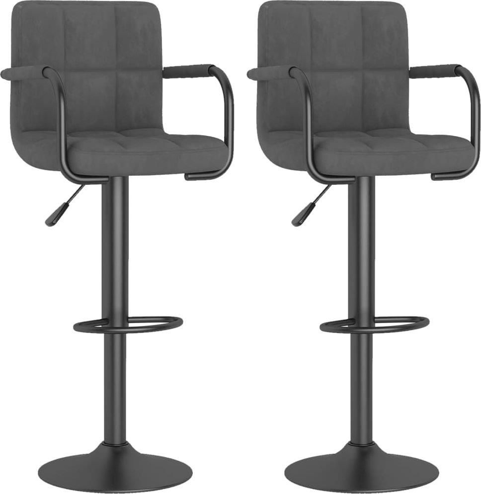 Wypij lampkę wina, przegryź coś lub po prostu zrelaksuj się, siedząc na tych stołkach barowych. Obite miękkim w dotyku aksamitem krzesła barowe zapewniają optymalny komfort siedzenia. Malowana proszkowo, stalowa rama gwarantuje wysoką wytrzymałość, a wbudowany podnóżek większą przyjemność siedzenia. Dodatkowo dzięki podnośnikowi gazowemu można wyregulować wysokość mebli. Są one idealnym dodatkiem do każdego funkcjonalnego baru lub jadalni. Można się na nich również obracać o 360 stopni, co zapewnia dużą swobodę. Kolor: ciemnoszary Kolor stali: czarny Materiał: malowana proszkowo stal, aksamit (100% poliester) Wymiary: 48 x 47 x (90-111) cm (szer. x gł. x wys.) Szerokość siedziska: 40 cm Średnica podstawy: 38,5 cm Możliwość obrotu o 360 stopni Podnośnik pneumatyczny Z wbudowanym podnóżkiem Regulacja wysokości: tak Podłokietniki: tak Wymagany montaż: tak Zawartość przesyłki: 2 x stołek barowy
