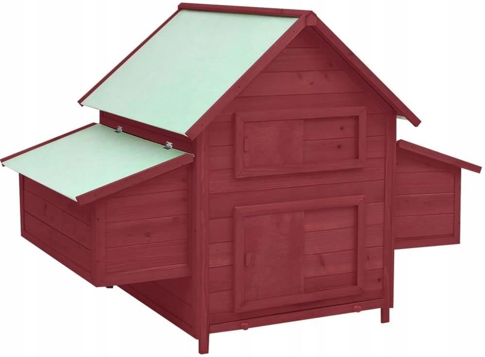 Ten drewniany kurnik jest doskonałym wyborem do hodowli kurcząt w komfortowych warunkach. Kurnik ma przednie okno, które zapewnia dopływ świeżego powietrza. Dwa gniazda do składania jaj pokryto otwieranym dachem, co ułatwi wyjmowanie jaj. Spodnia część może zostać wyjęta, co usprawnia czyszczenie. Drzwiczki można zamknąć z zewnątrz zasuwką. Wykonany z litego drewna jodłowego kurnik jest trwały i stabilny. Wodoodporny materiał na dachach chroni przed deszczem, tworząc ciepłe i wygodne miejsca do odpoczynku wewnątrz kurnika. Kolor: czerwono-biały Materiał: lite drewno jodłowe Wymiary całkowite: 152 x 96 x 110 cm (szer. x gł. x wys.) Wymiary komory do składania jaj: 33 x 77 x 29/39 cm (szer. x gł. x wys.) Dach z MDF pokryty tkaniną wodoodporną Dwa gniazda do składania jaj Produkt odpowiedni dla kur Wymagany montaż: tak