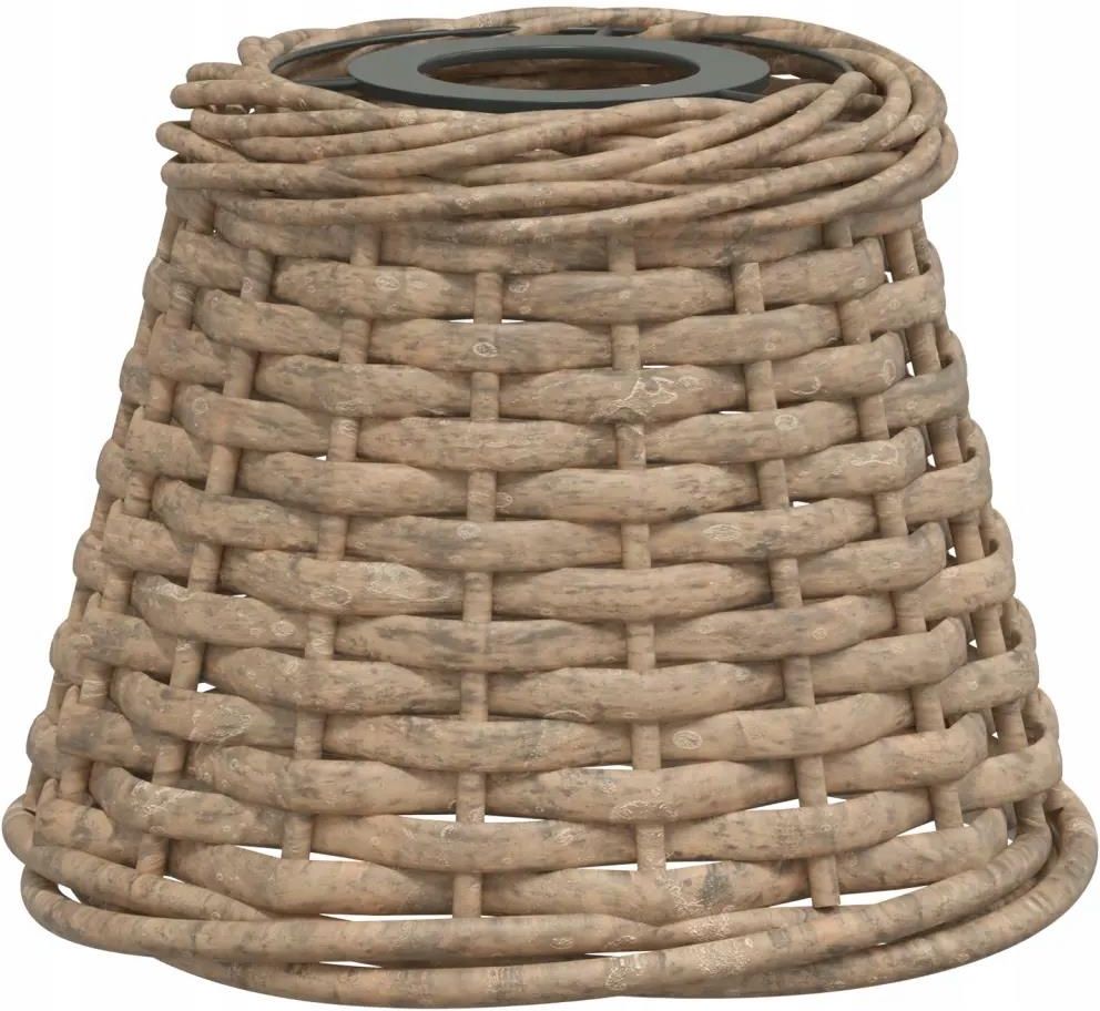 Klosz do lampy wiszącej, brązowy, Ø15x12 cm, wiklina Charakteryzujący się uroczym stylem klosz do lampy wiszącej będzie dobrym wyborem, jeśli zależy Ci na stylu i funkcjonalności. Inspirowane naturą wzornictwo: wykonany ręcznie z naturalnej wikliny abażur wzbogaci wystrój Twojego wnętrza o nutkę naturalnego piękna. Solidna konstrukcja: klosz do lampy wiszącej został wyposażony w malowany, żelazny uchwyt, który bezpiecznie pomieści żarówkę. Szeroki zakres zastosowań: klosz lampy sufitowej będzie przyciągającym wzrok dodatkiem bez względu na to, czy umieścisz go w salonie, sypialni, jadalni, kuchni czy przedpokoju. Warto wiedzieć: Żarówki nie są dołączone. Kolor: brązowy Materiał: wiklina, żelazo Wymiary: 15 x 12 cm (śr. x wys.) Średnica górnej części: 11 cm Średnica wewnętrzna otworu uchwytu: 4 cm Średnica zewnętrzna otworu uchwytu: 6 cm Odległość uchwytu od dołu klosza: 12 cm Na żarówki E27