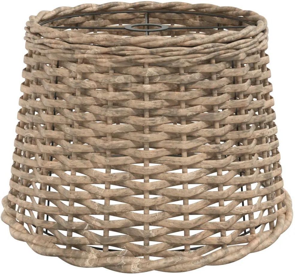 Klosz lampy wiszącej, brązowy, Ø40x26 cm, wiklina 364377 Charakteryzujący się uroczym stylem klosz do lampy wiszącej będzie dobrym wyborem, jeśli zależy Ci na stylu i funkcjonalności. Inspirowane naturą wzornictwo: wykonany ręcznie z naturalnej wikliny abażur wzbogaci wystrój Twojego wnętrza o nutkę naturalnego piękna. Solidna konstrukcja: klosz do lampy wiszącej został wyposażony w malowany, żelazny uchwyt, który bezpiecznie pomieści żarówkę. Szeroki zakres zastosowań: klosz lampy sufitowej będzie przyciągającym wzrok dodatkiem bez względu na to, czy umieścisz go w salonie, sypialni, jadalni, kuchni czy przedpokoju. Warto wiedzieć: Żarówki nie są dołączone. Kolor: brązowy Materiał: wiklina, żelazo Wymiary: 40 x 26 cm (śr. x wys.) Średnica górnej części: 27 cm Średnica wewnętrzna otworu uchwytu: 4 cm Średnica zewnętrzna otworu uchwytu: 6 cm Odległość uchwytu od dołu klosza: 26 cm Kompatybilny z żarówkami E27 Parametry Kolor: Brąz Rozmiar: Ø 40 x 26 cm
