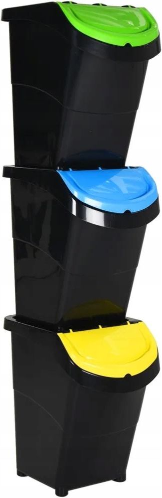 vidaXL Kosze na śmieci układane w stos, 3 szt., cz vidaXL Wykorzystaj te sztaplowane kosze na śmieci, aby zadbać o porządek w swojej przestrzeni! Praktyczny materiał: kosz do recyklingu wykonano z polipropylenu Polipropylen (PP) to popularne tworzywo sztuczne, które jest jednym z najczęściej stosowanych materiałów do wyrobu mebli ogrodowych. Jest lekki, twardy i odporny na uderzenia.Sztaplowana konstrukcja: możliwość ustawienia koszy w stos pozwala zaoszczędzić miejsce.Model z pokrywą: pokrywa pojemnika na śmieci jest odpinana, co umożliwia szybkie i łatwe wyczyszczenie wnętrza. Oprócz tego kolorowe pokrywy ułatwiają sortowanie śmieci. Kolor: Array Rozmiar: Array Wykorzystaj te sztaplowane kosze na śmieci, aby zadbać o porządek w swojej przestrzeni! Praktyczny materiał: kosz do recyklingu wykonano z polipropylenu Polipropylen (PP) to popularne tworzywo sztuczne, które jest jednym z najczęściej stosowanych materiałów do wyrobu mebli ogrodowych. Jest lekki, twardy i odporny na uderzenia.Sztaplowana konstrukcja: możliwość ustawienia koszy w stos pozwala zaoszczędzić miejsce.Model z pokrywą: pokrywa pojemnika na śmieci jest odpinana, co umożliwia szybkie i łatwe wyczyszczenie wnętrza. Oprócz tego kolorowe pokrywy ułatwiają sortowanie śmieci. Kolor: czarny Materiał: PP (polipropylen) Wymiary (każdej sztuki): 43,5 x 31 x 46 cm (szer. x gł. x wys.) Pojemność całkowita: 120 L (40 L x 3) Zawartość przesyłki: 3 x sztaplowany kosz na śmieci Kolor: Array Rozmiar: Array vidaXL
