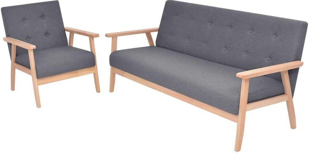 Ten zestaw niezwykle wygodnych mebli o prostej formie będzie doskonały do czytania, oglądania telewizji lub po prostu do odpoczynku. Zestaw wypoczynkowy obity jest miękką tkaniną poliestrową i wyściełany pianką dla zwiększenia komfortu. Dzięki solidnej, drewnianej ramie meble są stabilne i wytrzymałe. Montaż jest bardzo prosty. W przesyłce znajduje się fotel i sofa 3-osobowa. Kolor: ciemnoszary Materiał: drewniana rama i obicie z tkaniny Fotel: Wymiary: 64,5 x 67 x 73,5 cm (szer. x gł. x wys.) Szerokość siedziska: 53 cm Głębokość siedziska: 48 cm Wysokość siedziska nad ziemią: 37 cm Wysokość podłokietników nad ziemią: 51 cm Sofa 3-osobowa: Wymiary: 158 x 67 x 73,5 cm (szer. x gł. x wys.) Szerokość siedziska: 146 cm Głębokość siedziska: 48 cm Wysokość siedziska nad ziemią: 37 cm Wysokość podłokietników nad ziemią: 51 cm Łatwy montaż W skład przesyłki wchodzą 1 x fotel i 1 x 3-osobowa sofa Materiał: Poliester: 100%