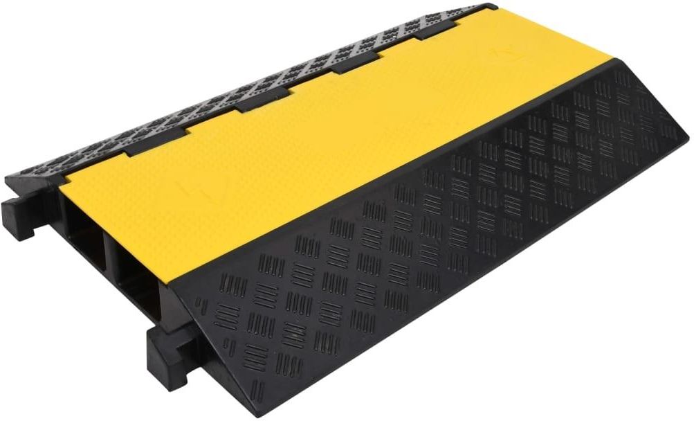 vidaXL Najazd kablowy, 5-kanałowy, 90 cm, gumowyBe vidaXL 5-kanałowy najazd kablowy jest przeznaczony do ukrycia i zabezpieczenia przewodów, kabli, węży i rurek. Najazd wykonano z gumy, która jest lekka, wytrzymała i trwała. Ma intensywny, żółty kolor oraz symbole ostrzegawcze na wierzchu, co zwiększa jego widoczność. Zawiera 5 kanałów do poprowadzenia i zabezpieczenia kabli i wytrzyma maksymalne obciążenie wynoszące 10 ton. Kable można z łatwością włożyć lub wyjąć po podniesieniu pokrywy. Konstrukcja modułowa umożliwia połączenie ze sobą szeregu najazdów, aby zabezpieczyć kable na większej długości. Rozmiar: Array 5-kanałowy najazd kablowy jest przeznaczony do ukrycia i zabezpieczenia przewodów, kabli, węży i rurek. Najazd wykonano z gumy, która jest lekka, wytrzymała i trwała. Ma intensywny, żółty kolor oraz symbole ostrzegawcze na wierzchu, co zwiększa jego widoczność. Zawiera 5 kanałów do poprowadzenia i zabezpieczenia kabli i wytrzyma maksymalne obciążenie wynoszące 10 ton. Kable można z łatwością włożyć lub wyjąć po podniesieniu pokrywy. Konstrukcja modułowa umożliwia połączenie ze sobą szeregu najazdów, aby zabezpieczyć kable na większej długości. Kolor: żółto-czarny Materiał: guma Wymiary: 90 x 50 x 5 cm (szer. x gł. x wys.) Maksymalne obciążenie: 5-10 ton Konstrukcja 5-kanałowa Konstrukcja modułowa Duża widoczność Rozmiar: Array vidaXL