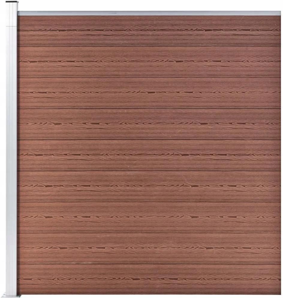 Ogrodzenie ogrodowe, WPC, 175x186 cm, brązowe vidaXL Kolor: Array Rozmiar: Array Nasz zestaw paneli ogrodzeniowych może służyć jako bariera w ogrodzie lub płot wokół posesji, w celu zapewnienia prywatności i bezpieczeństwa. Kompozytowe ogrodzenie ma z jednej strony fakturę drewnopodobną, a z drugiej jest gładkie, dzięki czemu możesz wybrać design, który bardziej Ci odpowiada. Panel z WPC nie wymaga dodatkowego wykończenia, takiego jak olejowanie lub malowanie. Jest bardzo trwały oraz odporny na niszczenie i rdzewienie. Dzięki aluminiowemu profilowi na górze, deski paneli są mocno połączone ze sobą, co zwiększa ich sztywność i wytrzymałość na uderzenia. Zaprojektowane w systemie modułowym deski są proste w montażu i umożliwiają dowolną rozbudowę ogrodzenia. Słupki mają trzy szczeliny, dzięki czemu możesz zamocować je na różne sposoby, np. w linii prostej (180 stopni), pod kątem prostym (90 stopni) i w kształcie litery "T". Wielofunkcyjne, stalowe kotwy można zamontować na 2 sposoby. Pierwszy z nich to przykręcenie ich do powierzchni za pomocą dołączonych do zestawu śrub kotwiących. Druga metoda polega na zakotwiczeniu ich w cementowej podstawie przy użyciu załączonego kołka gruntowego. Montaż zestawu jest łatwy. Przesyłka obejmuje 9 desek z WPC, 1 słupek, 1 stalową kotwę i 1 aluminiowy drążek. Kolor: brązowy Materiał: kompozyt drewna i tworzywa sztucznego + aluminiowa listwa zakończeniowa i słupki Wymiary całkowite: 175 x 186 cm (szer. x wys.) Wymiary pojedynczej deski: 170 x 20,3 cm (dł. x szer.) Długość listwy końcowej: 170 cm Wymiary słupka: 7 x 7 x 185 cm (dł. x szer. x wys.) Zawartość przesyłki: 9 x deska ogrodzeniowa 1 x słupek ze stalową podstawą 1 x aluminiowa listwa końcowa