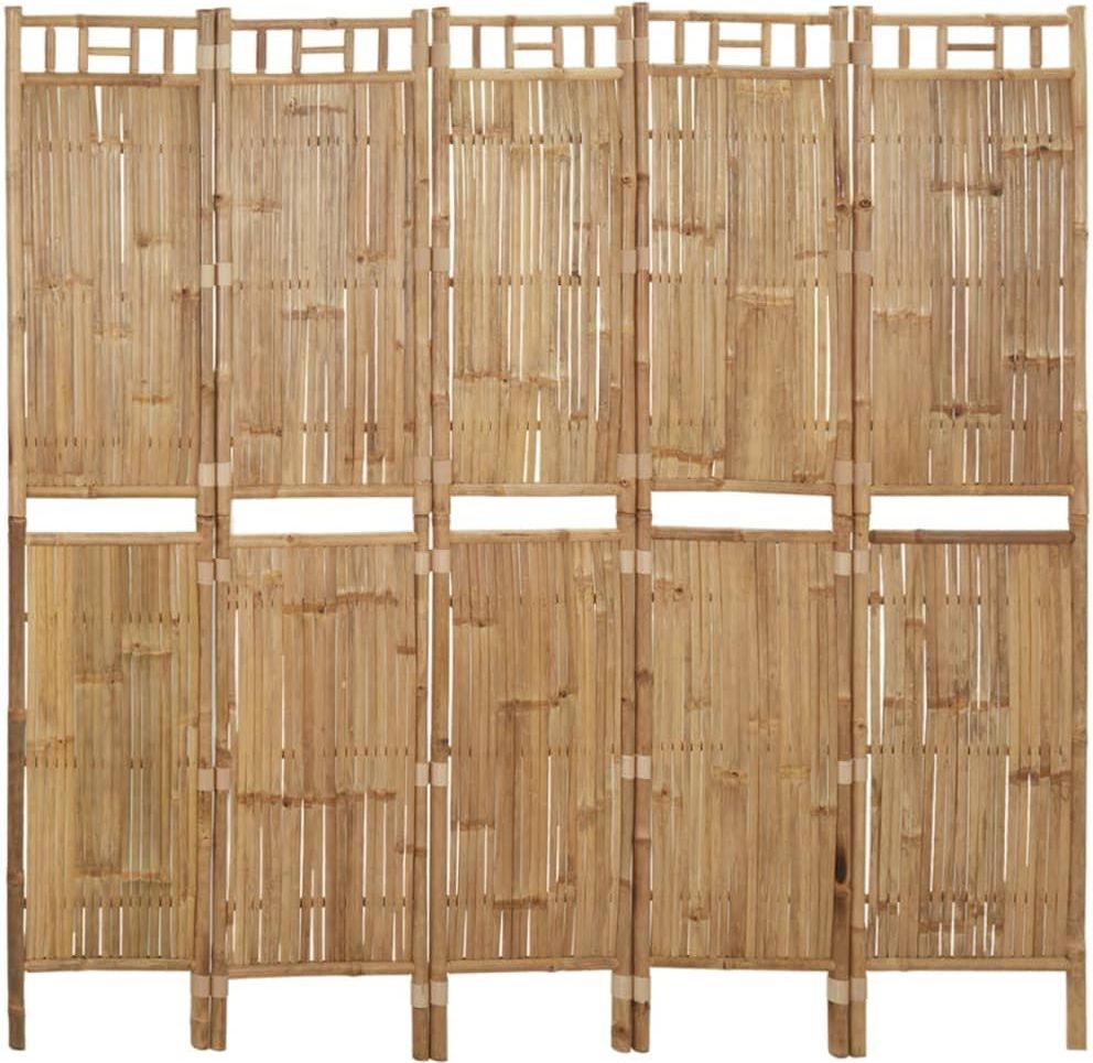 Parawan 5-panelowy, bambusowy, 200 x 180 cm Ta stylowa i praktyczna, bambusowa przegroda 5-panelowa może być używana do dekoracji lub jako ścianka działowa. Praktyczny materiał: parawan został wykonany z wysokiej jakości bambusa charakteryzującego się trwałością i odpornością na działanie czynników pogodowych. Ponadto mebel można łatwo wyczyścić wilgotną ściereczką. Praktyczna konstrukcja: parawan jest składany i można go łatwo schować, gdy nie jest używany. Wielozadaniowy parawan pokojowy: świetnie sprawdzi się do wydzielenia strefy prywatności lub stworzenia dodatkowego pokoju. Co więcej, autentyczny kolor bambusa doda Twojemu wnętrzu tropikalnego charakteru. Materiał: bambus Wymiary całkowite: 200 x 180 cm (szer. x wys.) Szerokość każdego panelu: 40 cm Wymagany montaż: tak