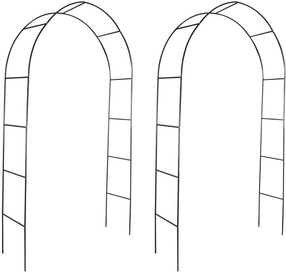 Ten zestaw zawierający dwie wysokiej jakości pergole będzie idealny dla róż i innych roślin pnących, oraz będzie prawdziwą ozdobą ogrodu, patio lub tarasu. Wykonany z wytrzymałego żelaza, odpornego na czynniki pogodowe łuk ogrodowy jest wystarczająco mocny, aby utrzymać najbardziej energiczne rośliny pnące. Pergola o szerokości 1,4 m ma wysokość 2,4 m, dzięki czemu można wybrać odpowiednią dla uzyskania najlepszej stabilności głębokość montażu. Ten łuk ogrodowy można łatwo zainstalować i zamontować. W dostawie zawarte są dwie sztuki. Wymiary: 140 x 39 x 240 cm (szer. x gł. x wys.) Materiał: żelazo Kolor: ciemnozielony 2 sztuki w zestawie