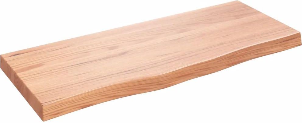 Potrzebujesz więcej miejsca do przechowywania, ale nie masz wolnej przestrzeni? Ta półka ścienna w rustykalnym stylu będzie idealnym rozwiązaniem. Wytrzymała konstrukcja: półkę wykonano z litego drewna dębowego, czyli pięknego, naturalnego materiału. Drewno to ma odcień średniego brązu oraz zwartą strukturę słojów, co przyczynia się do jego unikatowego wyglądu. Wszechstronne zastosowanie: oprócz pełnienia funkcji półki, produkt ten może posłużyć również jako blat w połączeniu z różnymi podstawami, w zależności od potrzeb. Można go wykorzystać jako blat w łazience, blat do szafki, blat do stolika itp. Wykończona powierzchnia: ta drewniana półka została polakierowana, dzięki czemu jest gotowa do użytku i nie wymaga żadnych dodatkowych zabiegów. Ręczne wykonanie z naturalną krawędzią: półka została wykonana ręcznie z zachowaniem naturalnej krawędzi drewna. Dzięki temu, że sęki, pęknięcia, lekko zakrzywione kształty i różne odcienie są charakterystyczne dla drewna dębowego, każda półka ma swój własny, unikatowy charakter. Wysyłka odbywa się losowo, dzięki czemu otrzymasz zupełnie wyjątkowy i niepowtarzalny produkt. Warto wiedzieć: Drewno to produkt naturalny, który może mieć sęki lub pewne niedoskonałości. Wypełnimy je czarnym wypełnieniem, aby zapewnić gładkie wykończenie. Kolor: jasnobrązowy Materiał: lite drewno dębowe wykończone lakierem Wymiary ogólne: 100 x 40 x (2-6) cm (dł. x szer. x gr.) Maksymalne obciążenie: 32 kg Z żywą krawędzią drewna