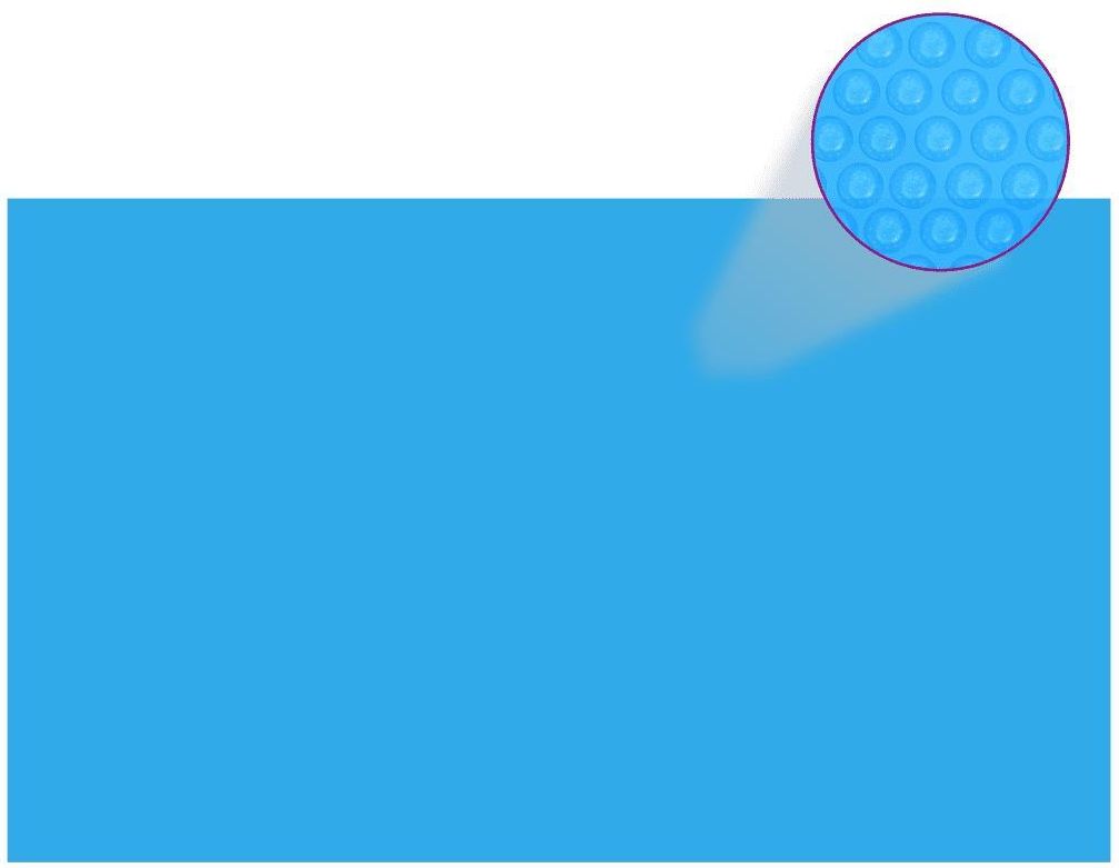 VidaXL Prostokątna pokrywa na basen, 1000 x 600 cm, PE, niebieska vidaXL Kolor: Array Rozmiar: Array Plandekę rozkłada się bezpośrednio na powierzchni wody i wewnątrz krawędzi basenu. Może podnieść temperaturę wody o 1°C, w zależności od natężenia światła słonecznego. Komory powietrzne PE na całej jej powierzchni pozwalają doskonale zachować ciepło. To najtańszy sposób na podgrzanie wody w basenie. Jednocześnie pomaga on zmniejszyć zużycie chemikaliów, a także odparowywanie wody. Plandeka jest lekka, dzięki czemu jej zakładanie i przenoszenie jest bardzo łatwe. Kolor: niebieski Materiał: gruba folia PE z komorami powietrza (bąbelkami) Wymiary: 1000 x 600 cm (dł. x szer.)
