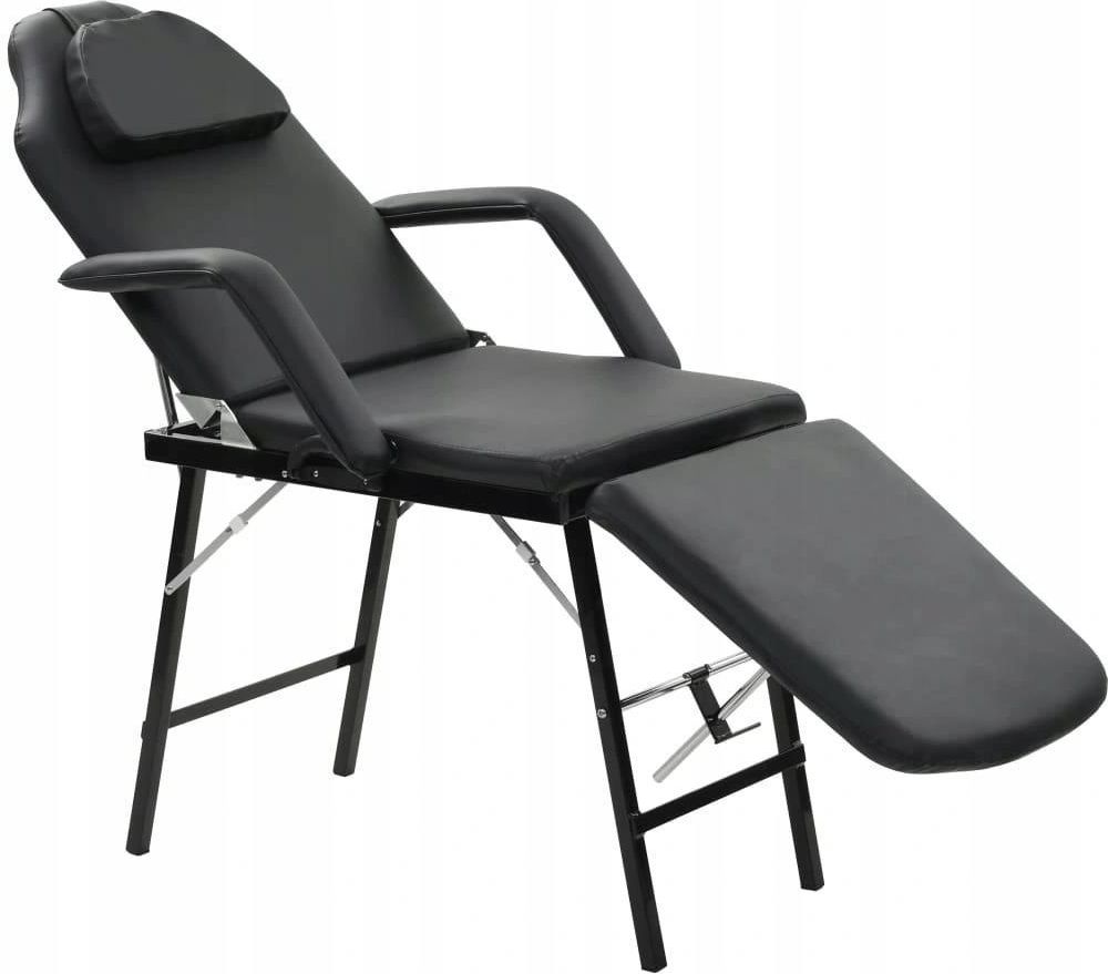 Wszechstronna, przenośna leżanka do zabiegów na twarz idealnie sprawdzi się zarówno w profesjonalnych salonach kosmetycznych, jak i w domu. Fotel kosmetyczny jest obity miękką sztuczną skórą, która jest wygodna, wytrzymała, łatwa w czyszczeniu i odporna na działanie kremów i olejków do masażu. Stalowa konstrukcja i drewniana rama czynią leżankę solidną i trwałą. Oparcie i podnóżek można łatwo odchylić w dół pod kątem maksymalnie 45°, co zapewnia optymalny komfort siedzenia lub leżenia. Poduszka pod głowę i podłokietniki są zdejmowane. Przenośny fotel dostarczany jest wraz z torbą transportową, która ułatwia zabranie go ze sobą. Fotel kosmetyczny jest łatwy w montażu. Kolor: czarny Materiał: sztuczna skóra + stal + drewno Wymiary po złożeniu: 76 x 65 x 24 cm (dł. x szer. x wys.) Wymiary jako łóżko: 185 x 78 x 76 cm (dł. x szer. x wys.) Wymiary jako fotel: 142 x 78 x 136,5 cm (szer. x gł. x wys.) Szerokość siedziska: 57 cm Głębokość siedziska: 55 cm Wysokość siedziska: 68,5 cm Wysokość podłokietników nad ziemią: 96,5 cm Zdejmowana poduszka pod głowę 2 zdejmowane podłokietniki Regulowany podnóżek i oparcie Prosty montaż Dołączona jest także torba transportowa Materiał: Bawełna: 10%, Poliester: 10%, PCV: 80%
