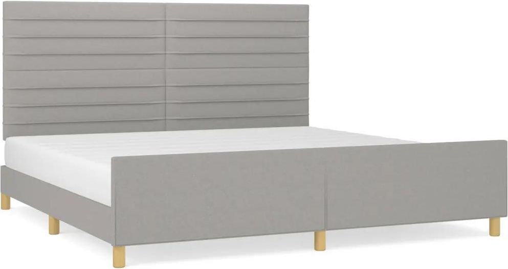 Wyśpij się porządnie dzięki tej ramie łóżka z zagłówkiem! Stanowi ona przyjemny dodatek do każdej sypialni. Trwały materiał: tkanina prezentuje prosty i czysty wygląd oraz jest oddychająca i trwała. Regulowana wysokość: zagłówek łóżka ma regulowaną wysokość i można go dostosować do Twoich preferencji. Nóżki: łóżko wsparte jest na solidnych nóżkach, które zapewniają jego stabilność, bezpieczeństwo i trwałość. Listwy ze sklejki: wykonane ze sklejki listwy zapewniają dobre rozłożenie ciężaru, dzięki czemu materac pozostaje na swoim miejscu przy każdym skręcie i obrocie ciała podczas snu. Doskonałe podparcie: to wezgłowie łóżka zapewnia doskonałe podparcie pleców, gdy siedzisz w łóżku i czytasz książki lub oglądasz telewizję. Uwaga: Dostawa zawiera tylko ramę łóżka. Materac nie jest dołączony. Pasujący materac można znaleźć w naszym sklepie. Każdy produkt jest dostarczany wraz z instrukcją montażu dla ułatwienia tej czynności. Kolor: jasnoszary Materiał: tkanina (100% poliester), lite drewno modrzewiowe, sklejka, materiał drewnopochodny Materiał wypełnienia: gąbka Wymiary całkowite: 203 x 206 x 118/128 cm (dł. x szer. x wys.) Wymiary pasującego materaca: 200 x 200 cm (szer. x dł.); materac nie jest częścią przesyłki Zawartość przesyłki: 1 x rama łóżka z zanóżkiem 1 x płyta zagłówka