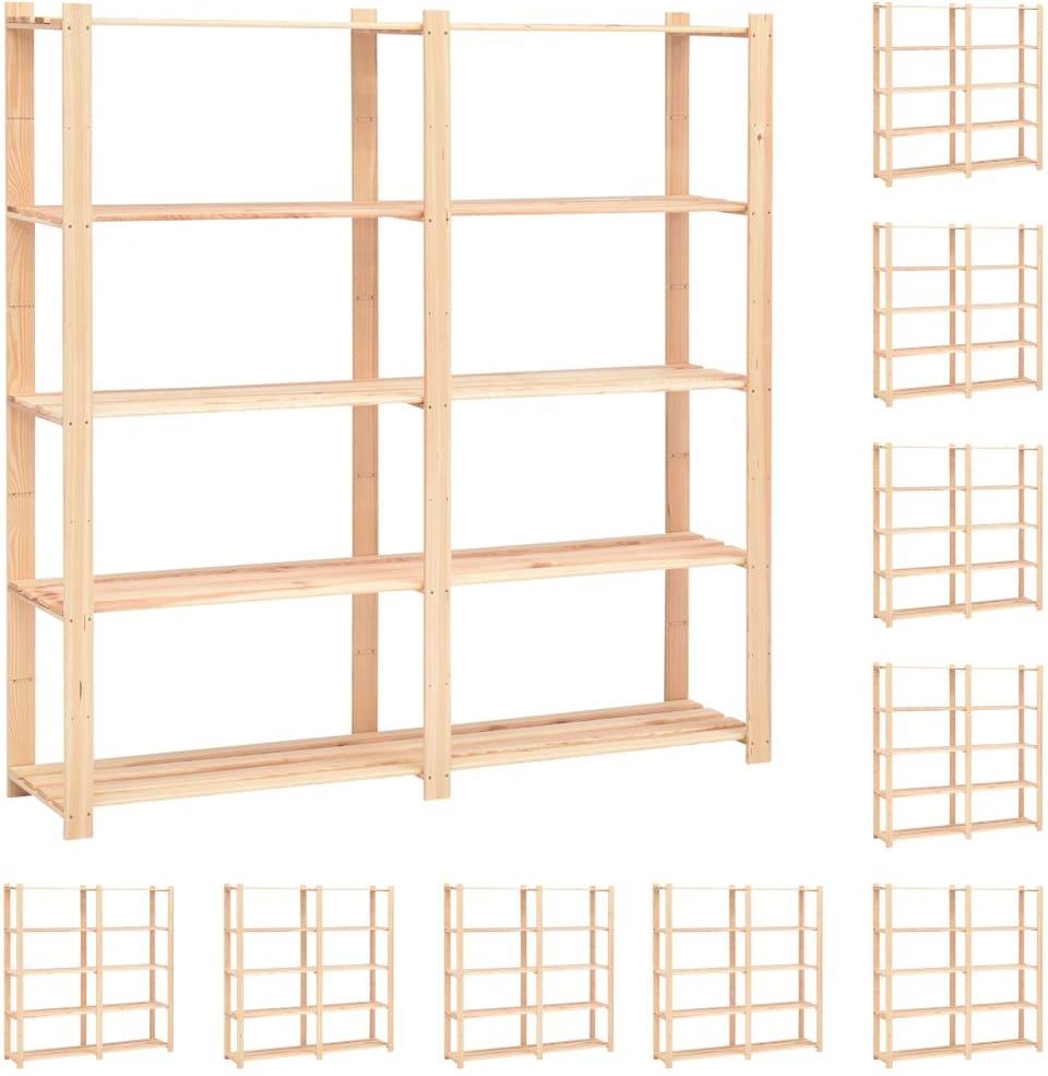 vidaXL Regały z 5 półkami, 10 szt., 170x38x170 cm, vidaXL Nasz regał do z litego drewna jest idealnym rozwiązaniem zarówno do przechowywania w domu, jak i w miejscach komercyjnych. Przyda się w kuchni, pralni, piwnicy, łazience, biurze, garażu, warsztacie lub gdziekolwiek indziej, gdzie może być …