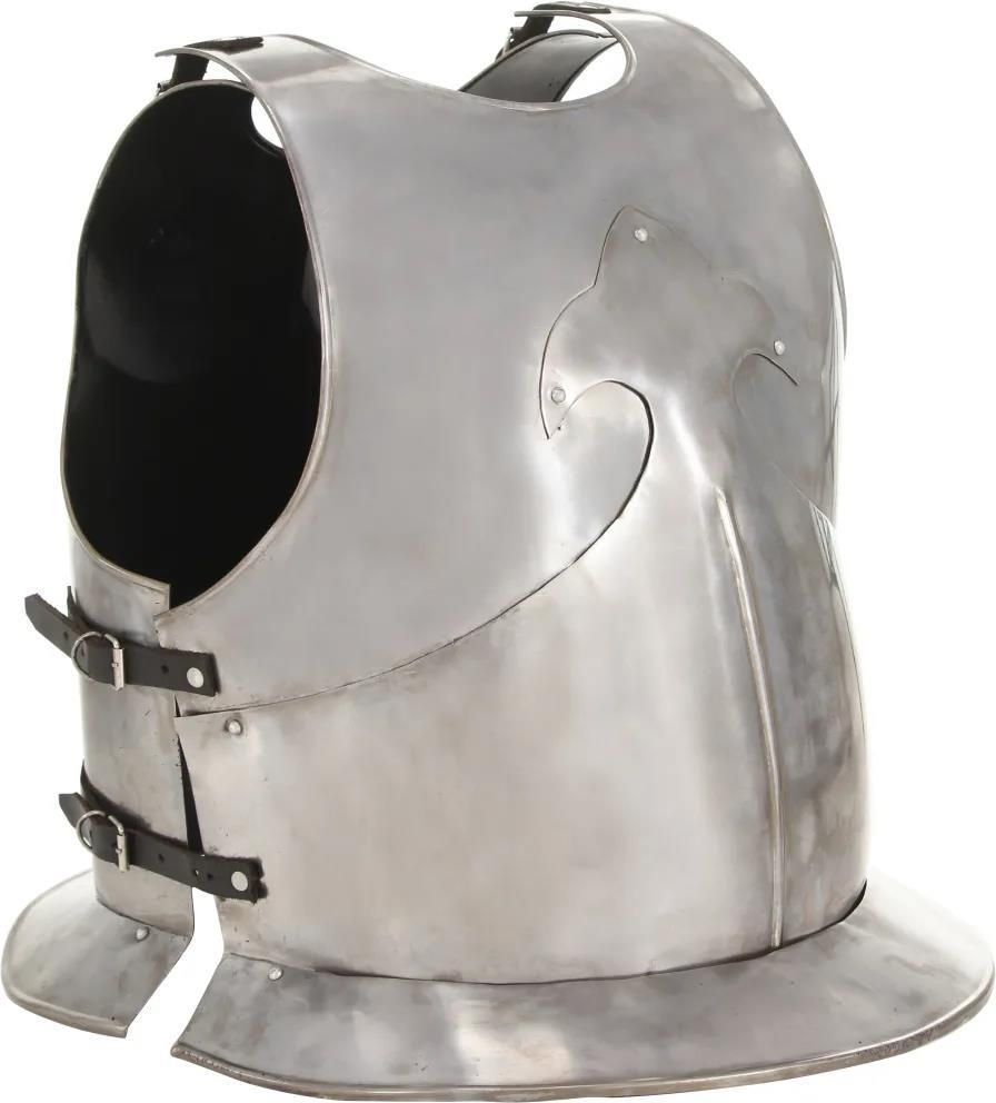 Replika napierśnika ze średniowiecznej zbroi LARP, srebrna stal Ten wyglądający na zabytkowy kirys jest idealny do LARP (live action role play), cosplay, na imprezy o tematyce historycznej czy Halloween, jako rekwizyt teatralny i do rekonstrukcji historycznych. Będzie też atrakcyjnym eksponatem. Ten pancerze jest dokładną repliką oryginalnego średniowiecznego kirysu rycerskiego, który zapewnia ochronę zarówno z przodu, jak i z tyłu. W pełni nadaje się do noszenia i wyposażony jest w regulowane paski ze skóry, by można było go wygodnie dopasować. Przyciągający wzrok kirys łączy zabytkowy styl i solidne materiały. Ponadto jest wykonany z polerowanej stali o grubości 1,024 mm. Kolor: srebrny Materiał: stal o grubości 1,024 mm (polerowana) Wymiary: 46 x 46 x 45 cm (szer. x gł. x wys.) Regulowane paski ze skóry Replika oryginalnego średniowiecznego kirysu rycerskiego o zabytkowym wyglądzie Product_volume: 0,063